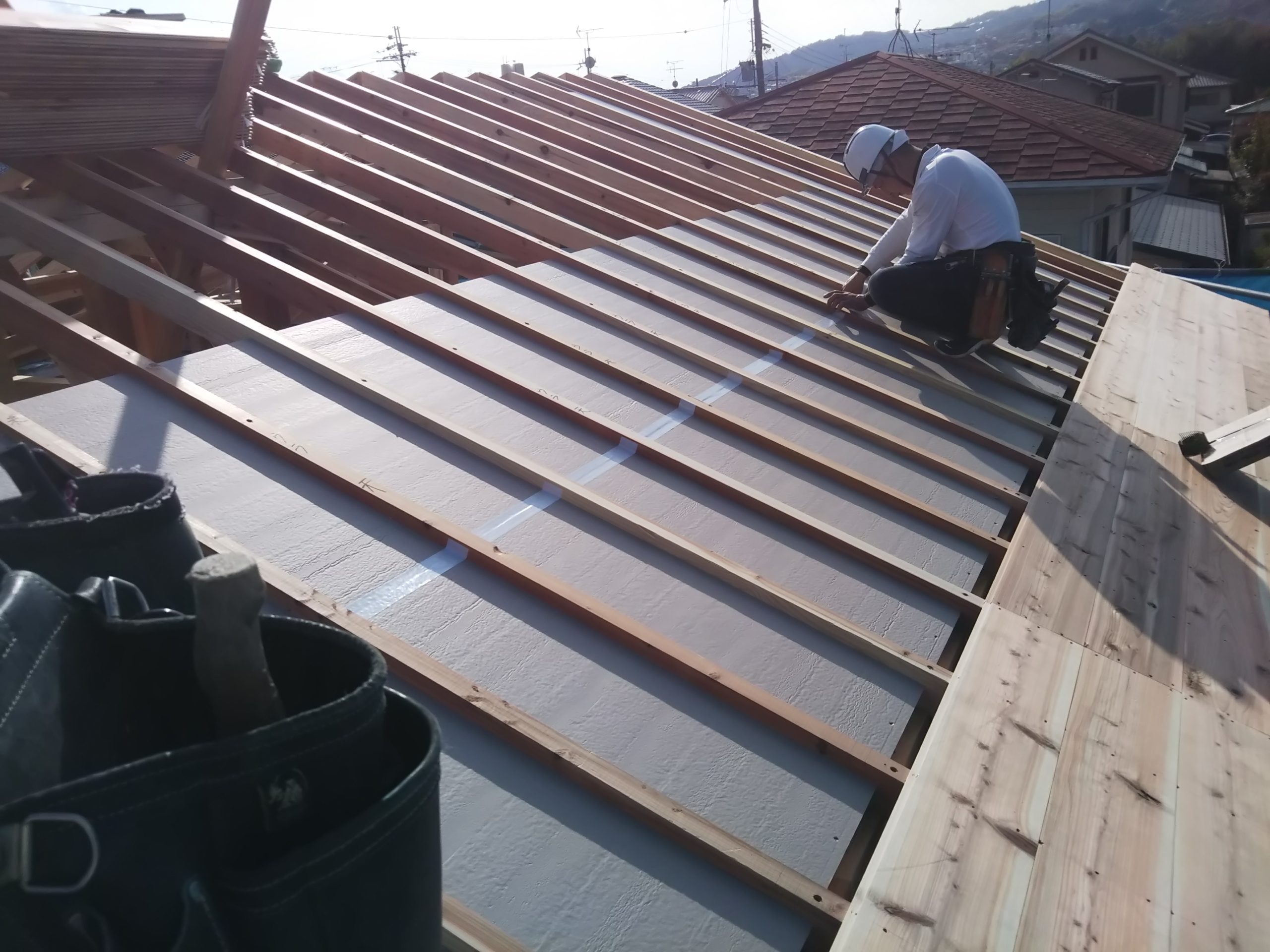 こちらは瓦屋根の野地ですが、ルーフィングも変わっ