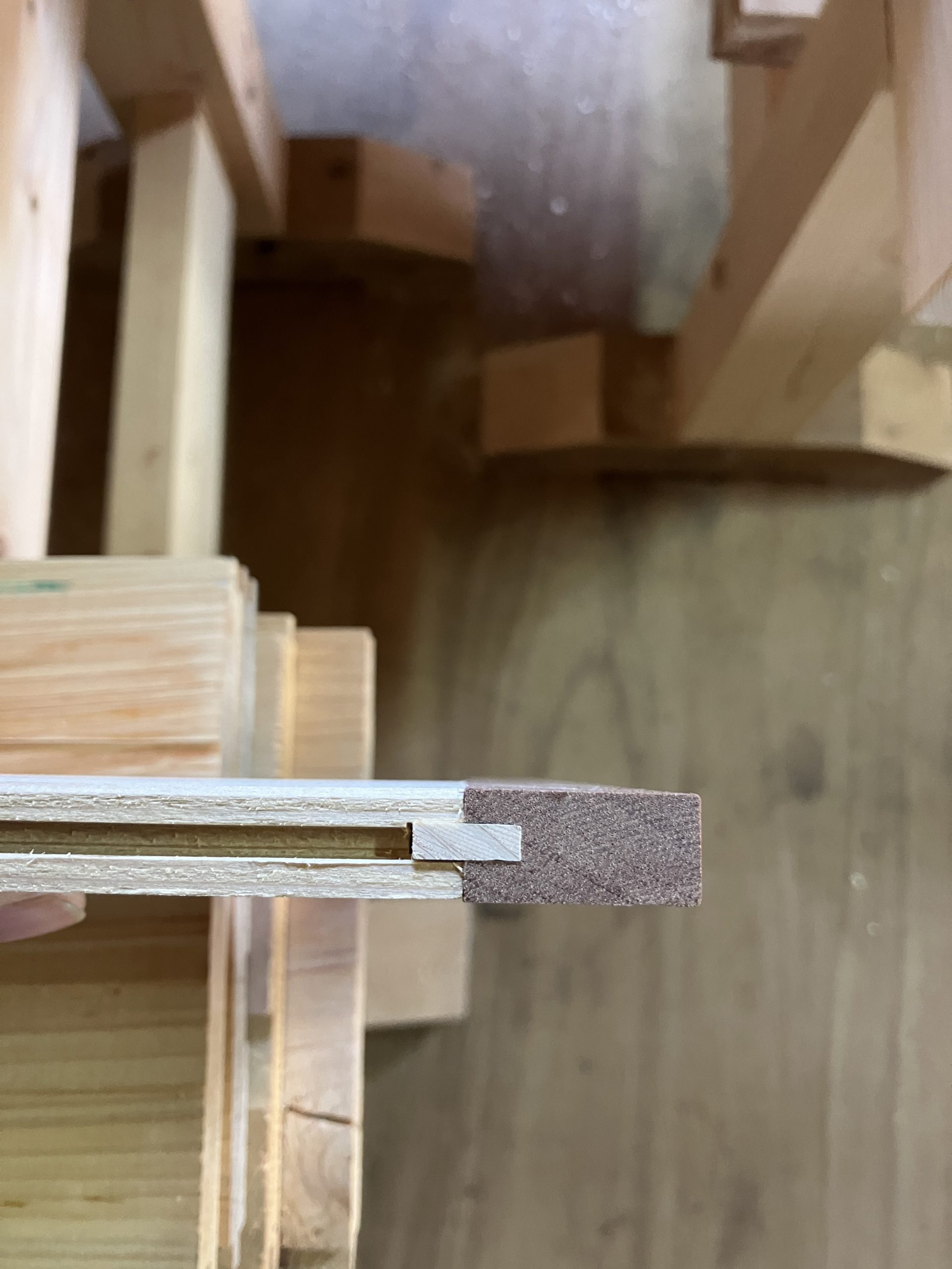 接ぎ合わせる板の木口と端の部材にそれぞれ雌口の加工を施します。