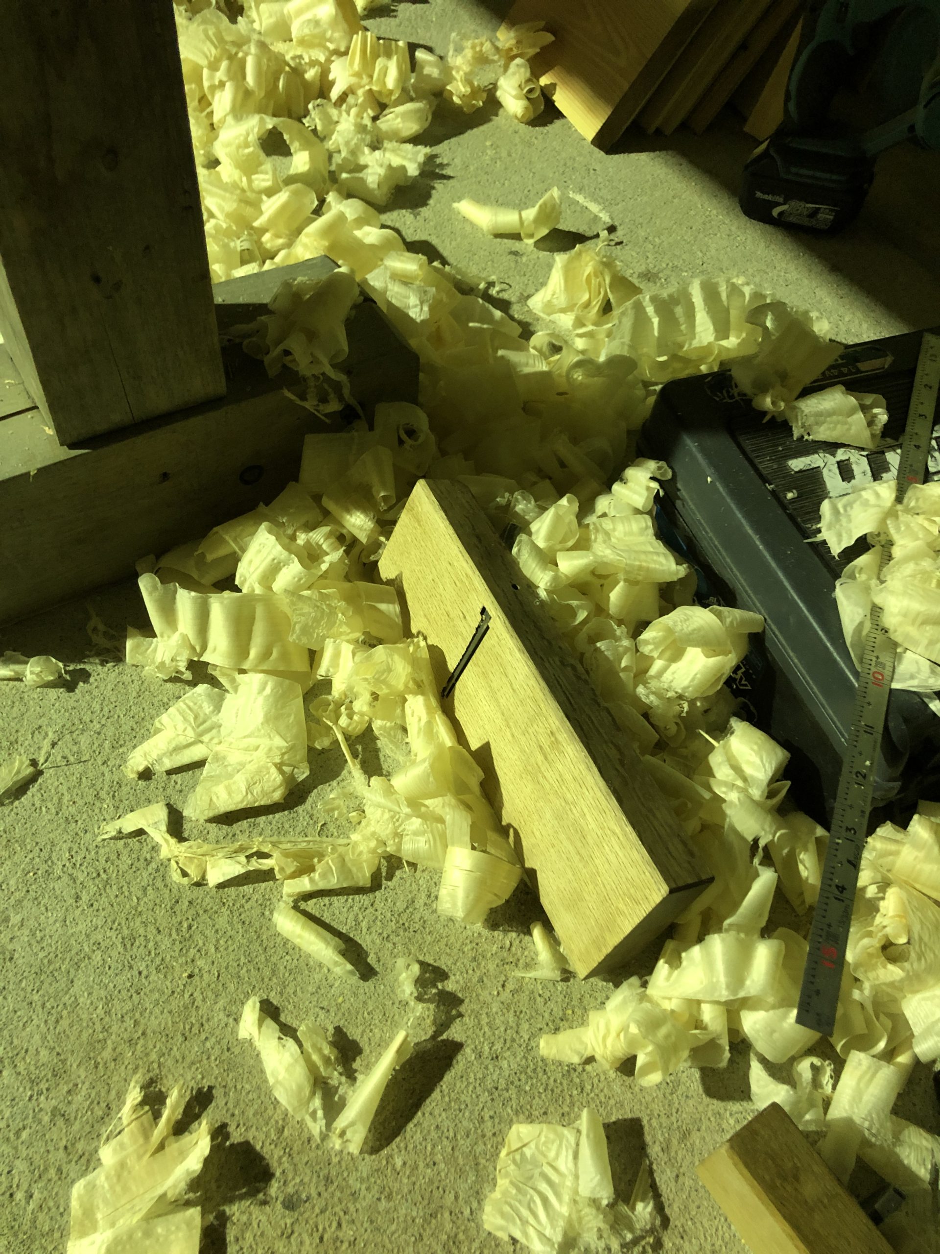 夕方に現場での仕事を終えて、会社に帰ってからは鉋で削りものの練習をしています。