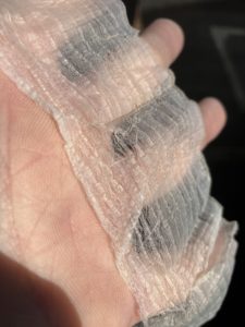 「削ろう会」という鉋削りの大会では2ミクロンが優勝ラインだそうなので、この鉋くずをさらに5枚にスライスした薄さですね。途方もない薄さです。