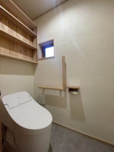 他の部屋と同様、壁・床・天井の仕上げの素材はもちろん、便器や紙巻機、タオル掛け、手すりの位置も検討します。