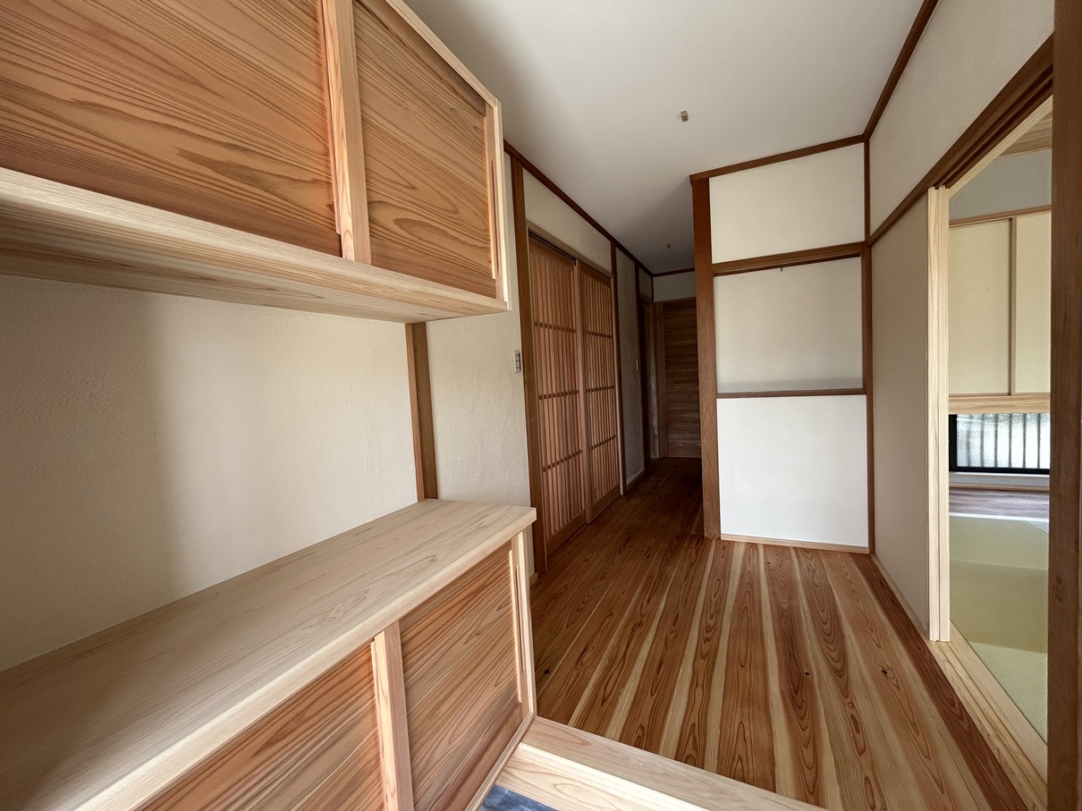 また、姿鏡付で要領たっぷりの玄関収納を新たに造作でつくり、縁側を部屋に取り込み明るい和室に。広く感じられる空間になりました。