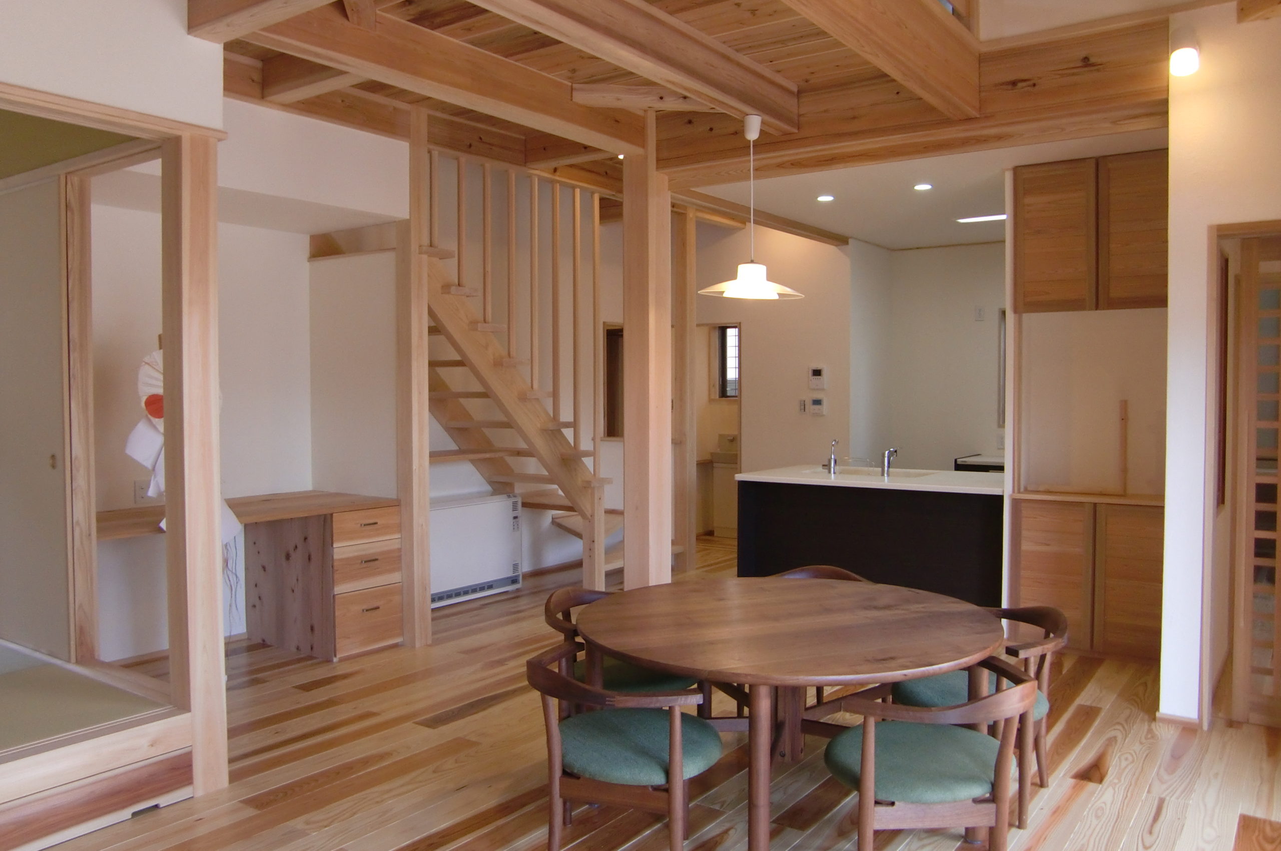 三郷町の閑静な住宅街で、吉野の木をふんだんに使った家の構造を見ていただきました。