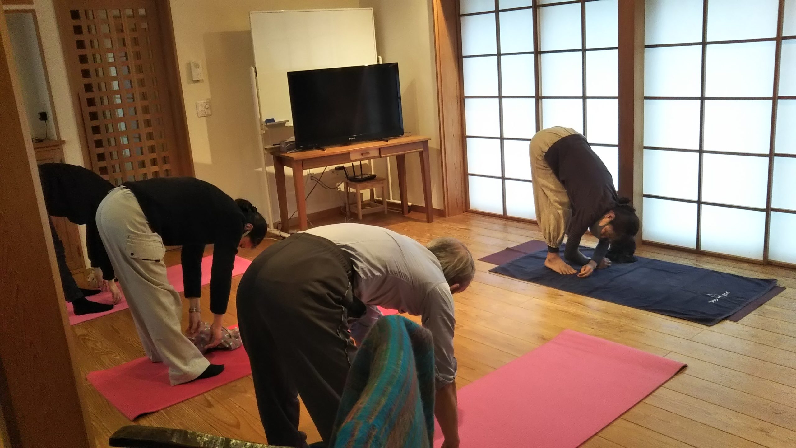 氣血水の滞りを自覚するために、曲げたり、伸ばしたり、押したり、引いたり。