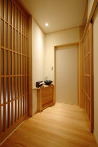 そこで、手洗いスペースを玄関に近い位置に別に設けました。この位置にあると来訪者もすすんで手洗いをしていただけるそうで、好評です。
