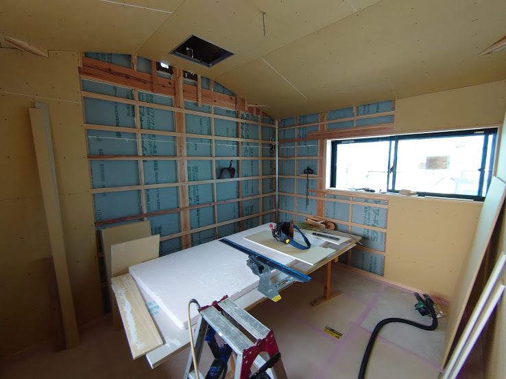 田原本の現場では石膏ボードの施工が進んでいました。