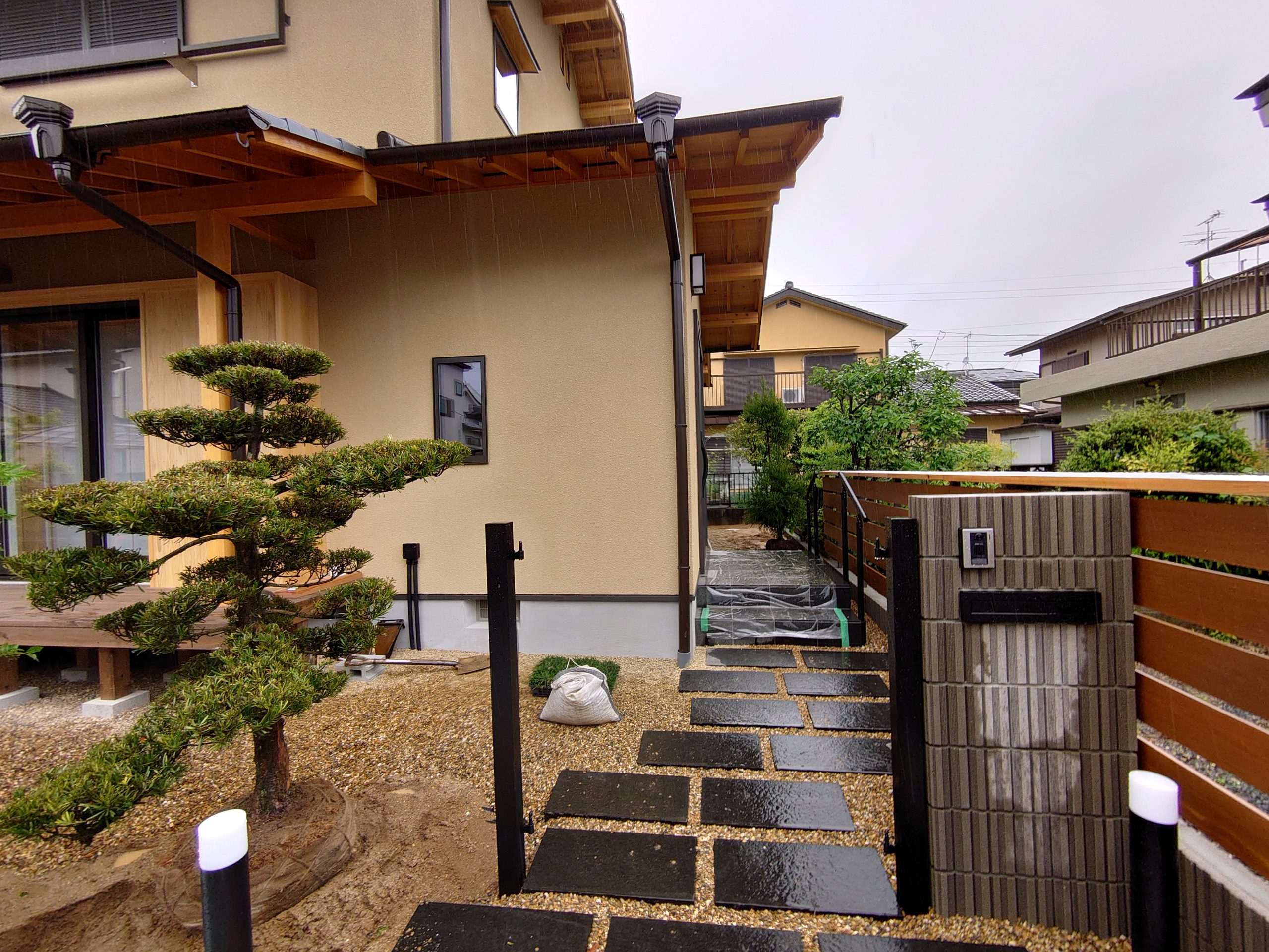 敷地の入り口から玄関までのアプローチを乱形で仕上げる予定です。
