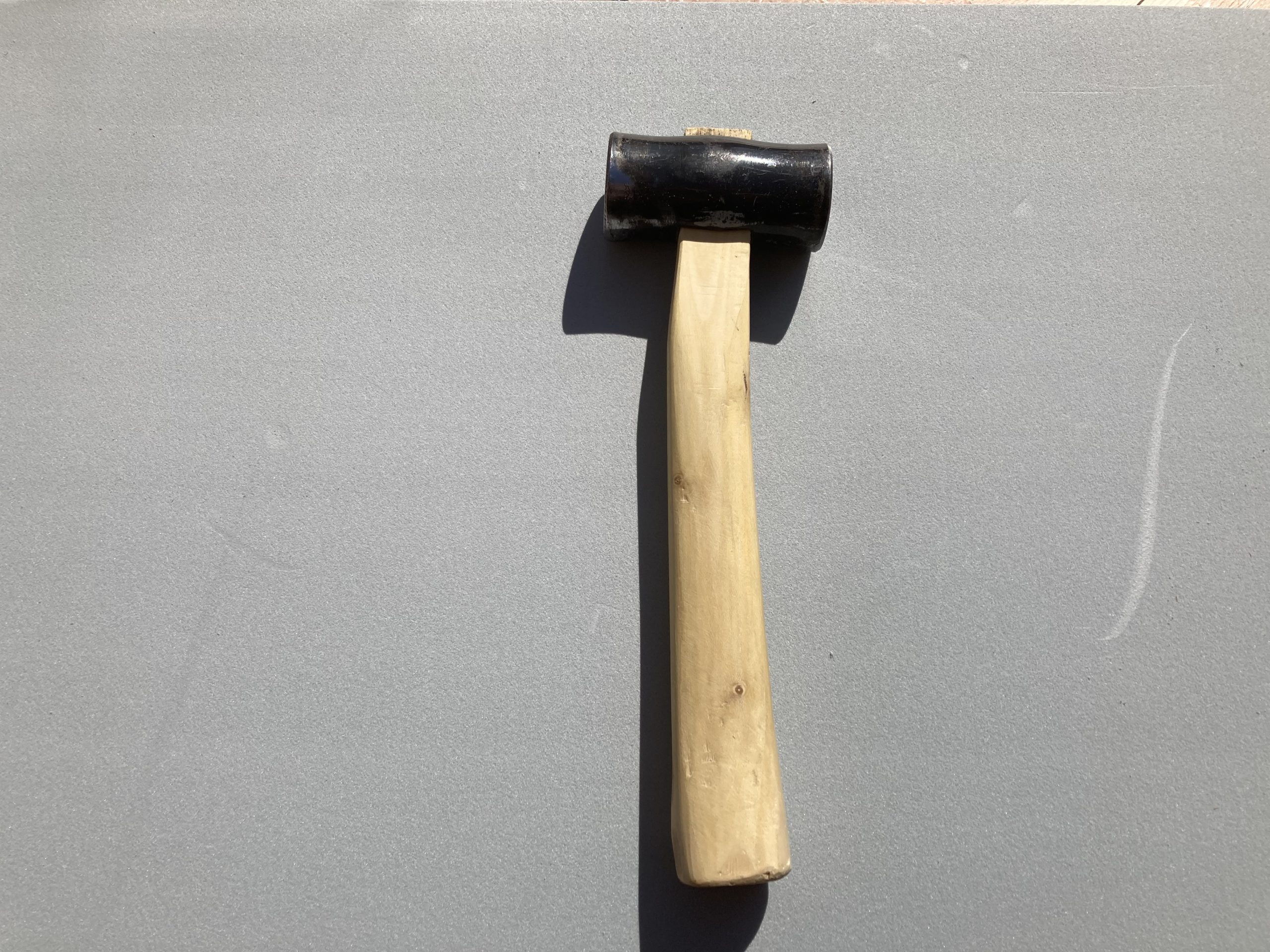 以前の投稿で紹介した、金物屋さんで買った玄翁の柄を無事にすげる事ができました。