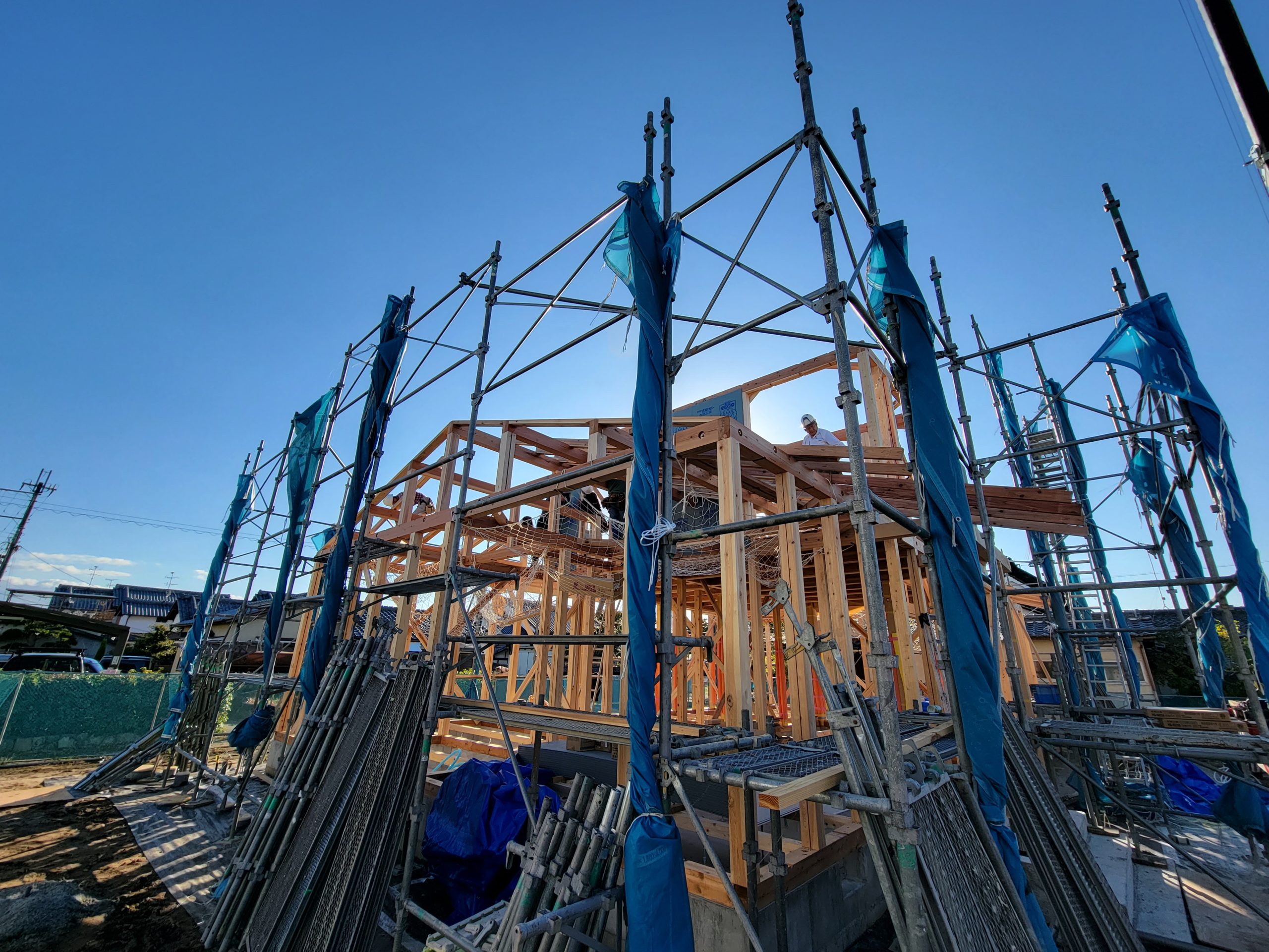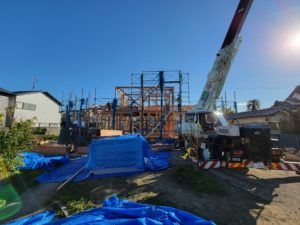 上棟までは天気もよく順調に工事が進んでいます。