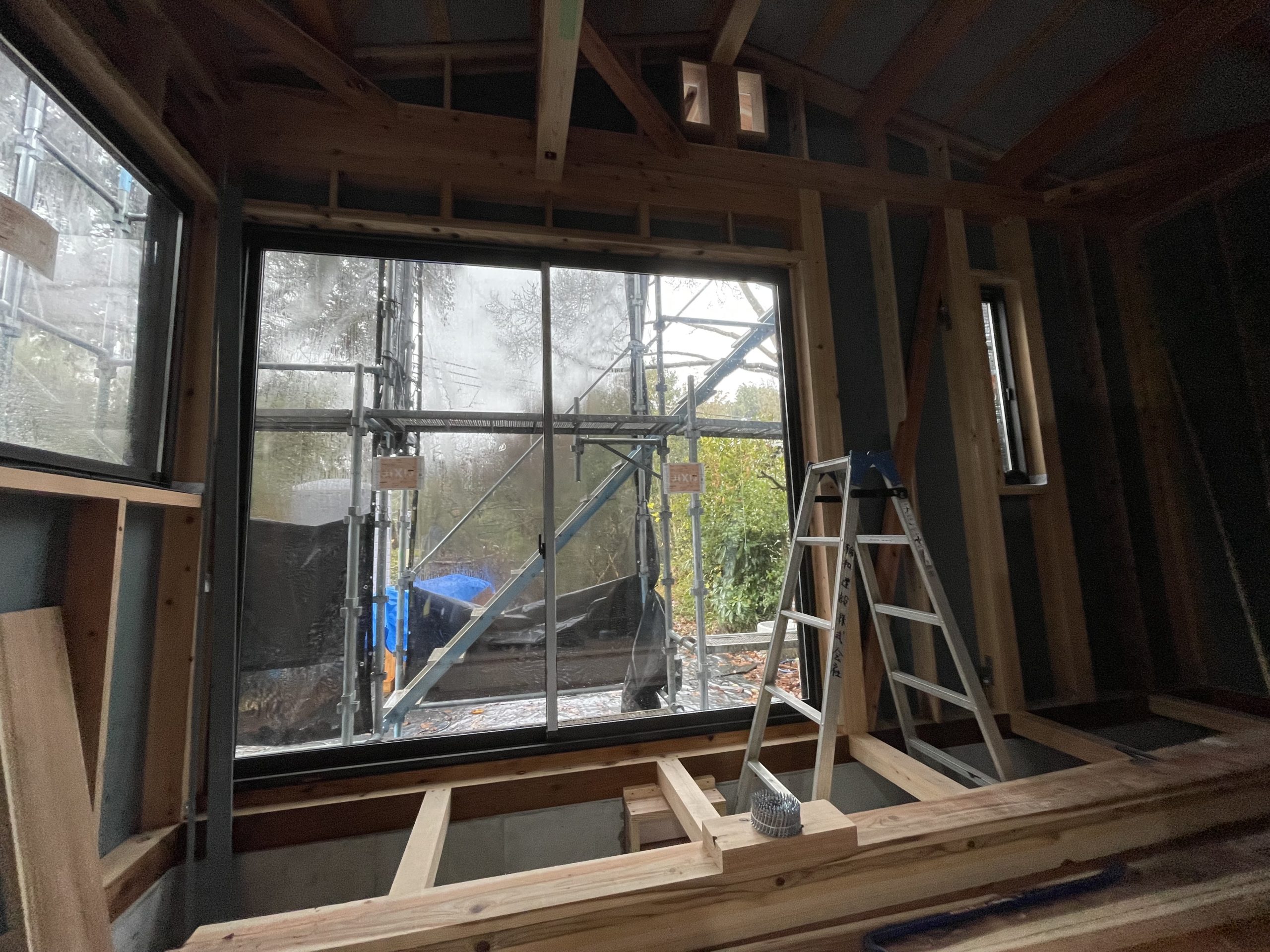 窓が取り付けられ、内部の空間がだいぶわかるようになってきました。