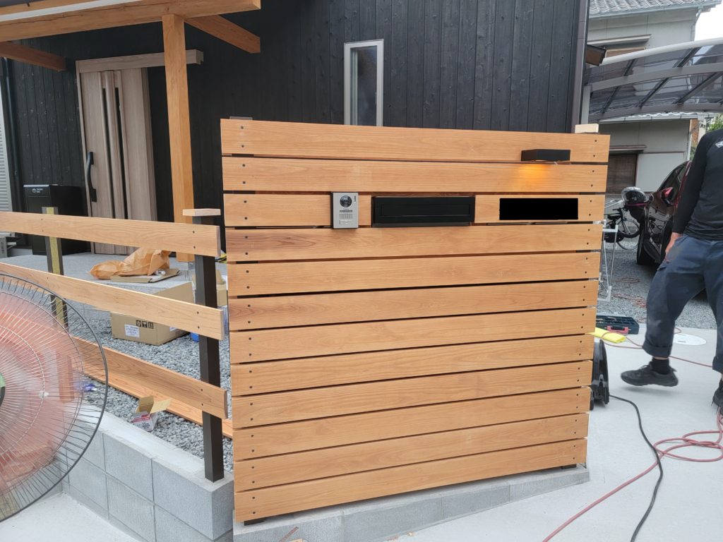 フェンスの面材は杉板を塗装したものを使用しています。