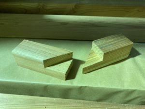 加工に鑿が必要なので少々手間ですが、組み付けの際には安定します。和室の廻り縁でもよく用いられる仕口のようです。