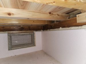 床下では、土台や根太にシロアリの発生がないか確認をします。