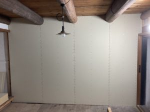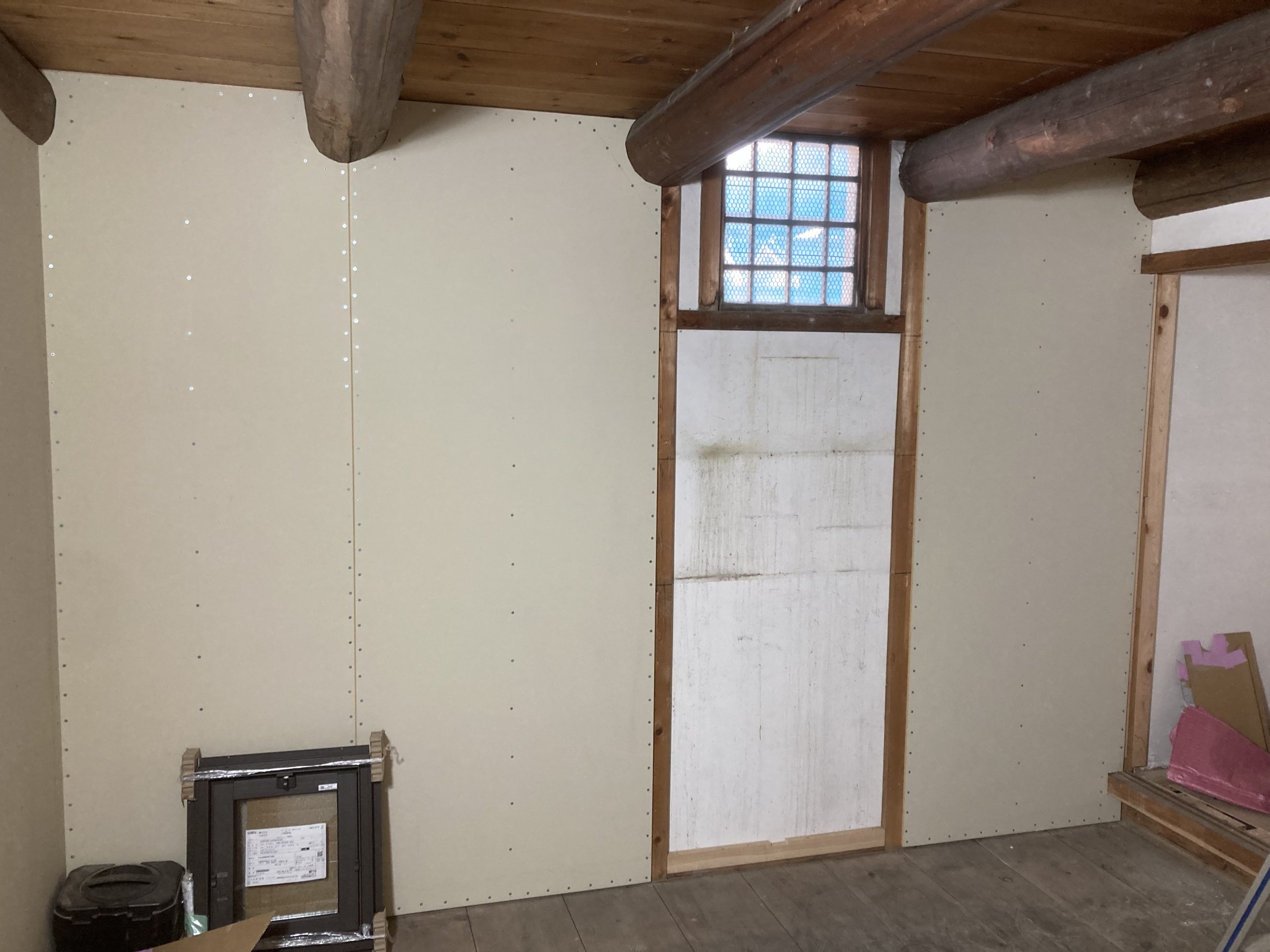 要領は普段のボード貼りと変わりませんでしたが、耐力壁扱いなので継ぐことができないというのは悩まされました。