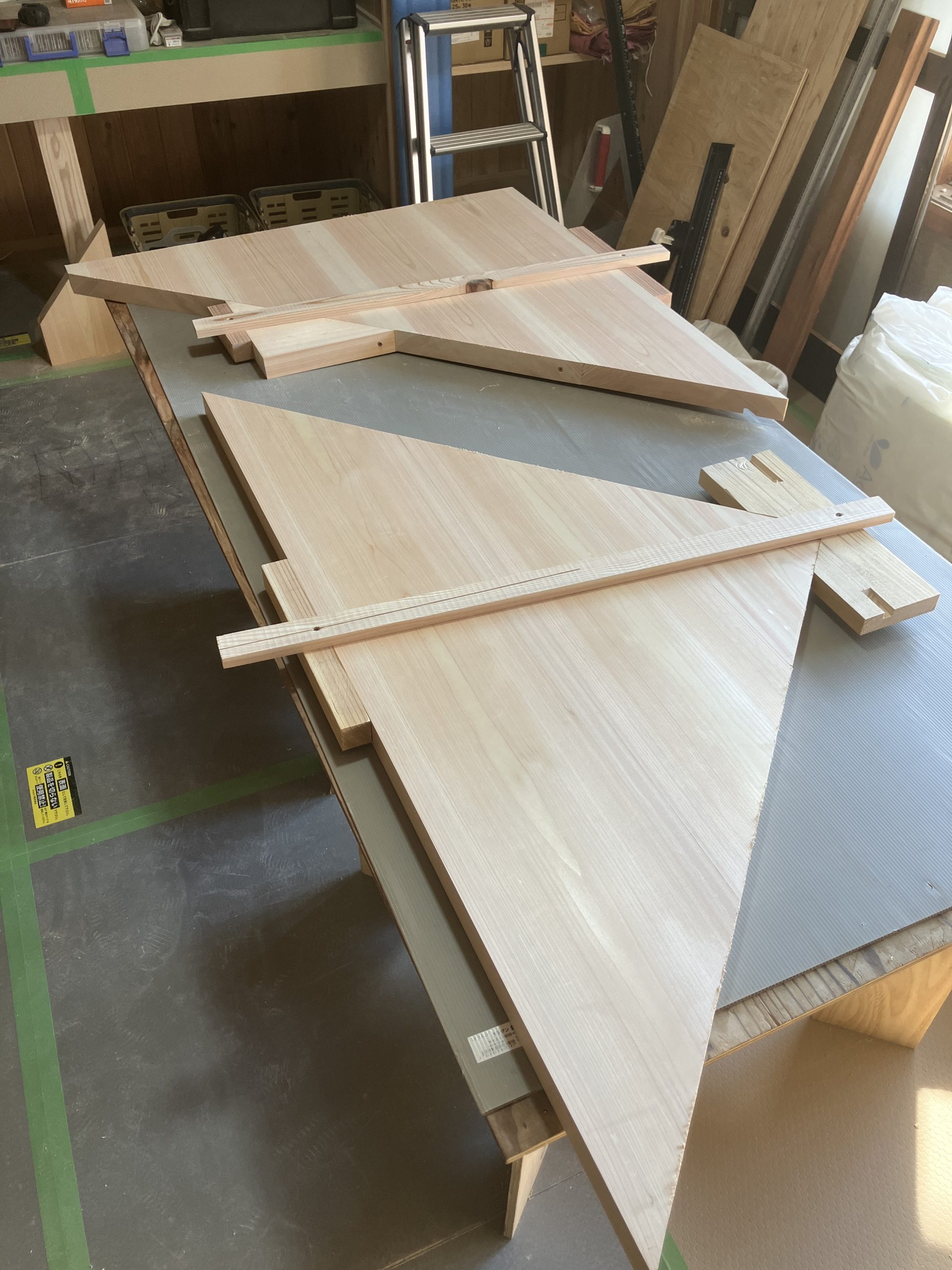 幅240の板を4枚(手前は3枚)を接ぎ合わせて廻り部分の踏板を作ります。