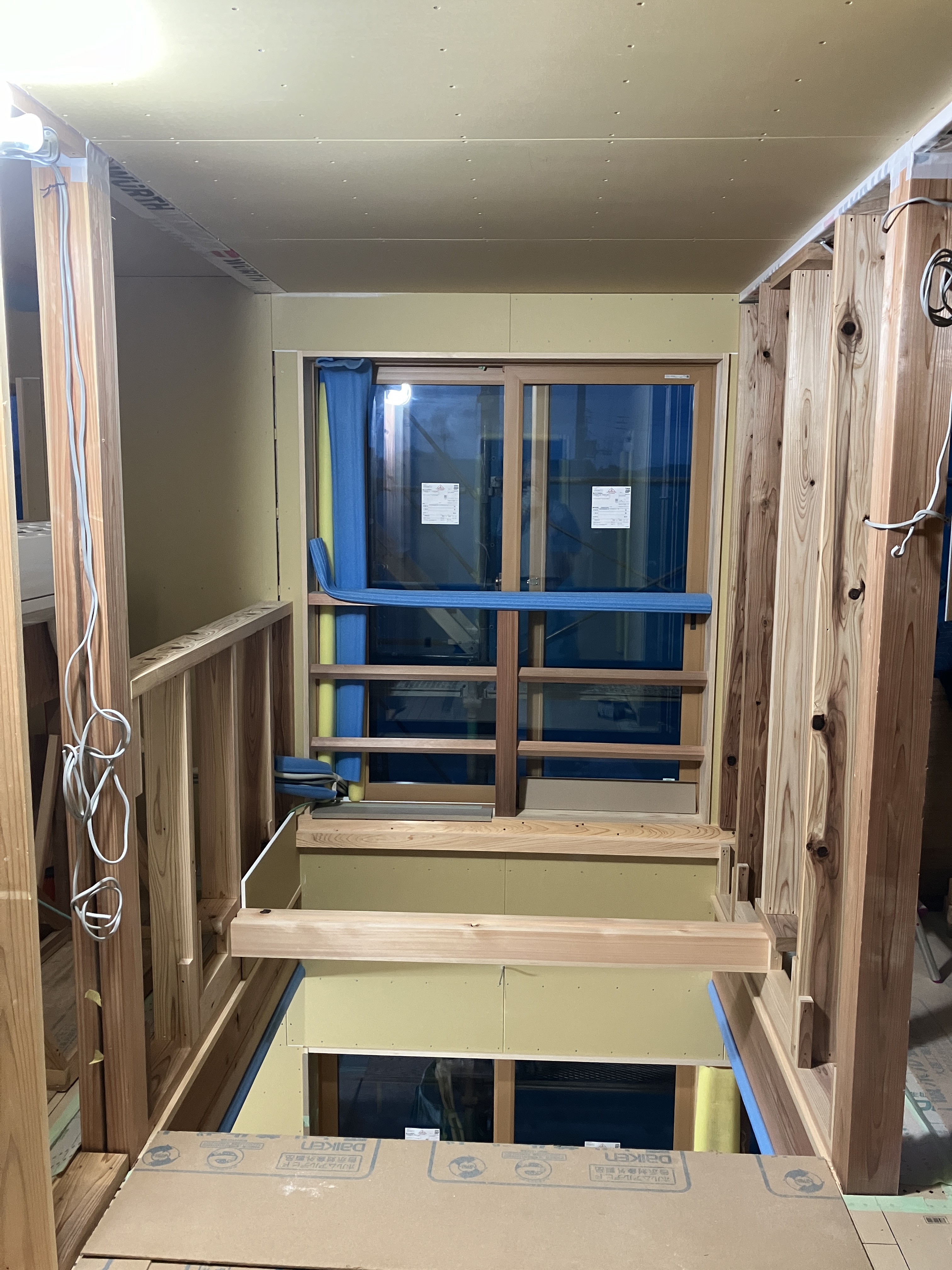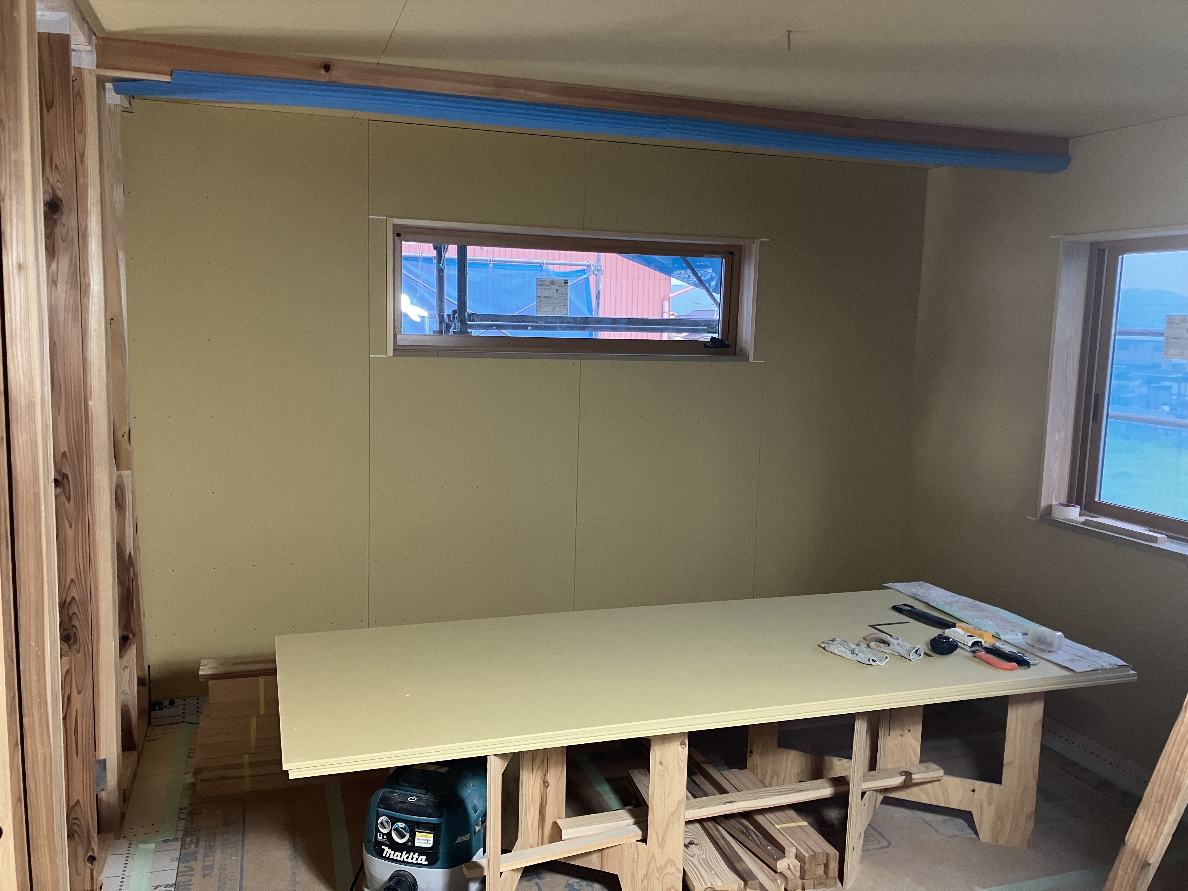 壁の下地をして、石膏ボードを貼って、と徐々に部屋らしくなってきました。