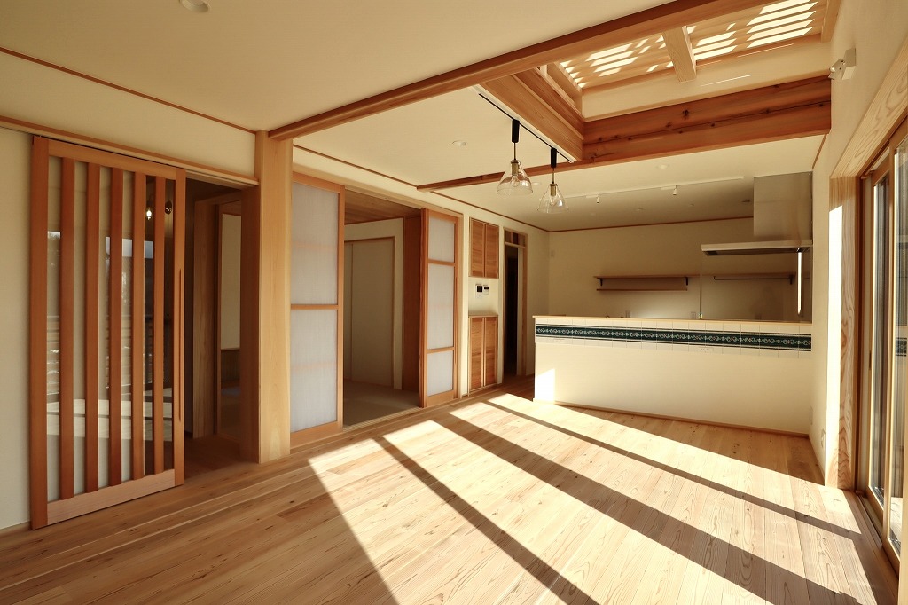 玄関から木のぬくもり、香りが感じられ、その奥に続くリビングへ入ると、とても気持ちのよい冬の陽光が入ってきていました。