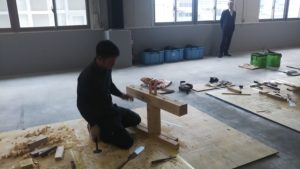 こちらもノミを使ってほぞ穴を加工してもらっているところですが、