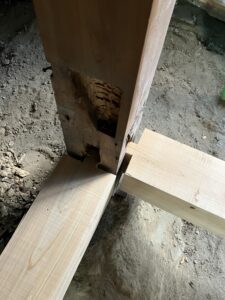 傷んだ構造材も、仕口・継ぎ手といった伝統的な技術を使って補修。