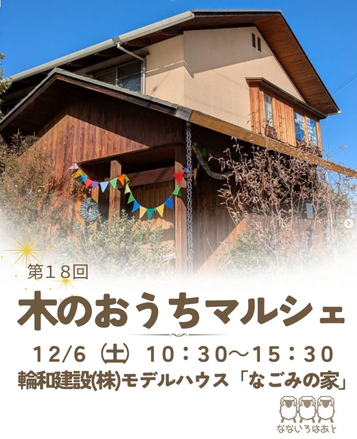 恒例となりました 障がい者応援くらぶなないろはあとさん主催の 第18回🌳木のおうちマルシェ❢🌳が開催されます。