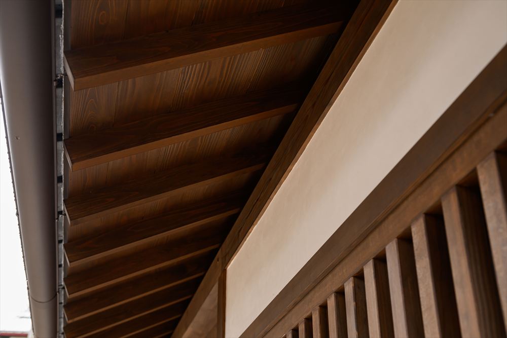 木格子の窓や、鎧板張りの外壁、周囲の町並みにミリ単位で揃えた軒の出など、今井町の景観と調和するためのデザインが盛りだくさん。大工さんの腕の見せ所が沢山あるお家となりました。
