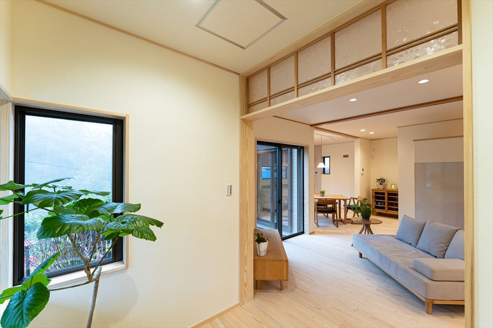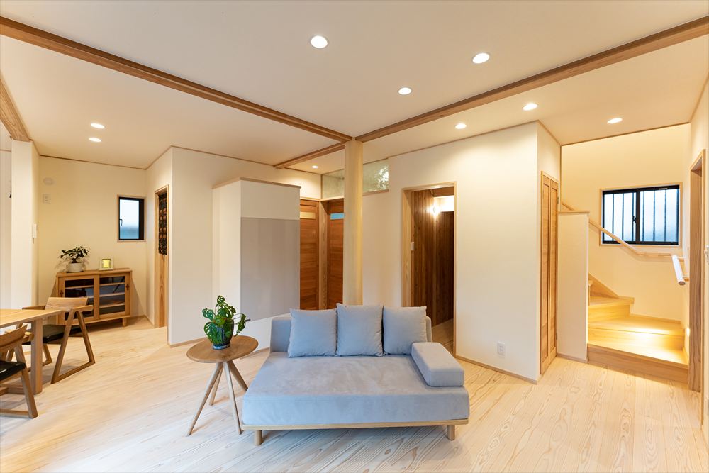 また、弊社の特徴である自然素材をふんだんに使用した建物内部は、明るく健やかな空間となっています。
