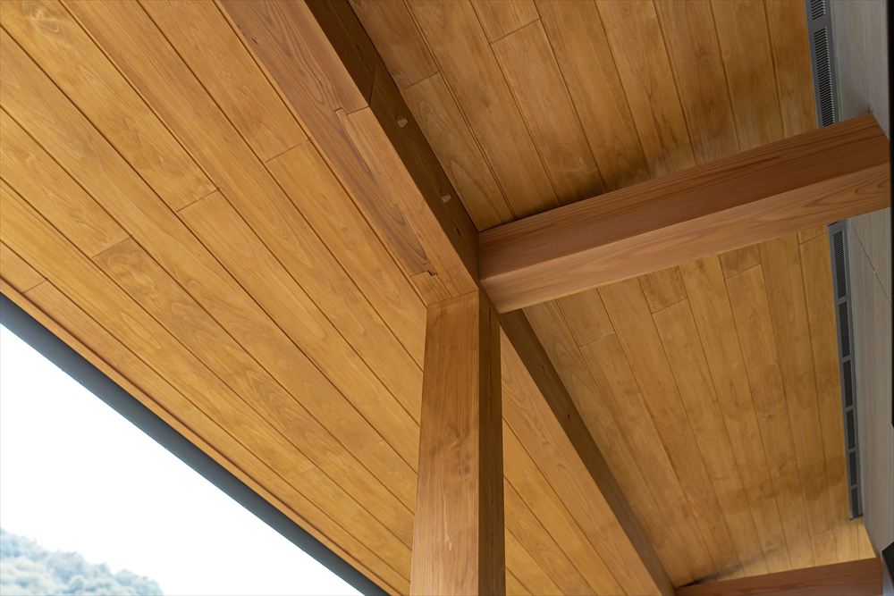 「自然を感じたい」というお施主様の要望に応えるべく、敷地の形状を踏まえた建物の配置計画から検討を重ね、外部の美しい自然を眺めれるように平面計画を進めました。