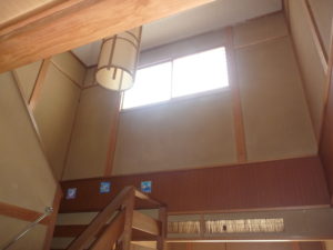 とても豪華な階段周りの吹き抜けでしたが開閉のできない窓・照明器具の電球交換時の危険が悩みの種になっていました。