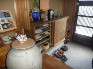 木目が美しい建具がポイントとなり、傘・靴・アウトドア用品がすべて収納できました。