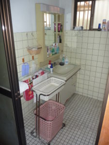 タイル張りで冷たかった洗面所をバリアフリーでおしゃれな空間になりました。
