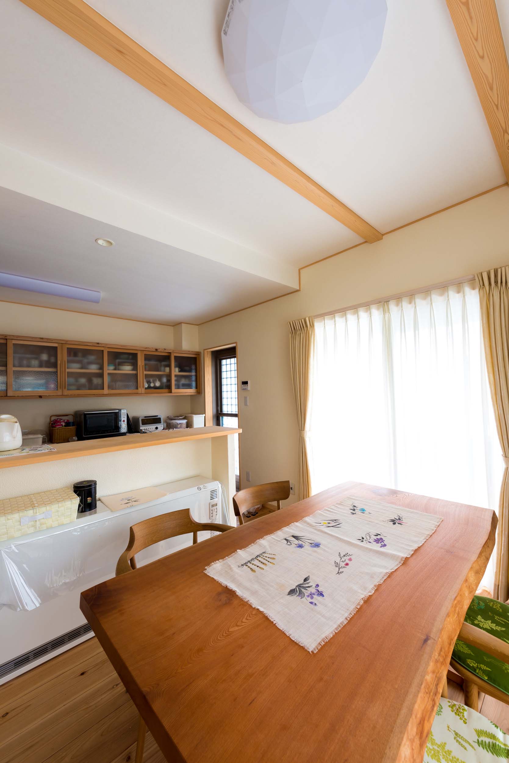 今回のリフォームに合わせて一枚板のダイニングテーブルとカーテンも新たにお家の一員に加わりました。