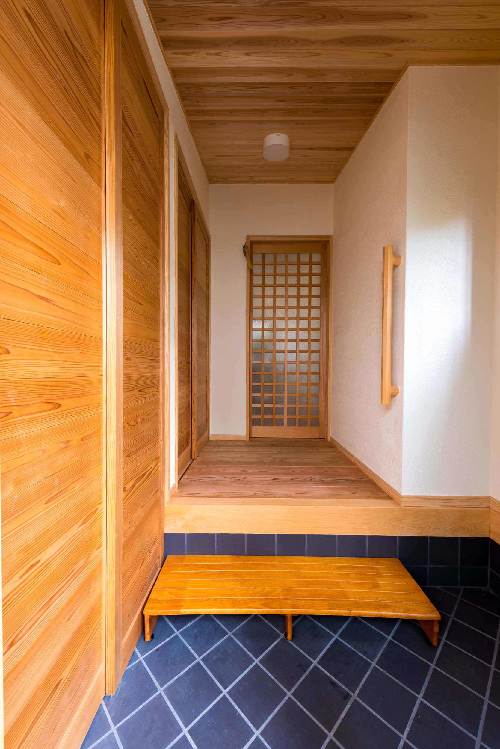 階段位置を変更し、木の香りが出迎えてくれる明るい玄関ホールになりました。