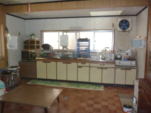 キッチンは古タンスや古材を用いた造作キッチンです。